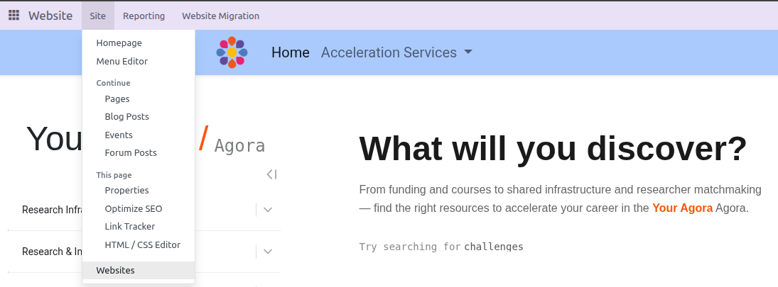 Then navigate to Website → Site → Websites